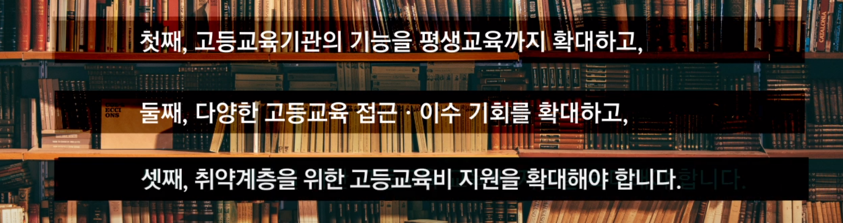 "모든 학습자들에게 성별과 장애유무에 관계없이 적정 비용으로 가능한 양질의 기술교육, 직업교육 및 대학교육을 포함한 고등교육에 대한 평등한 접근을 보장한다." - 장년층의 고등교육 이수율은 2015년 기준 18%로 OECD 평균 26%에 못 미쳤고, 청년층과 큰 차이(69%)를 보인다. 따라서 성인을 위한 양질의 고등교육 기회를 확대하려는 노력이 필요하다.