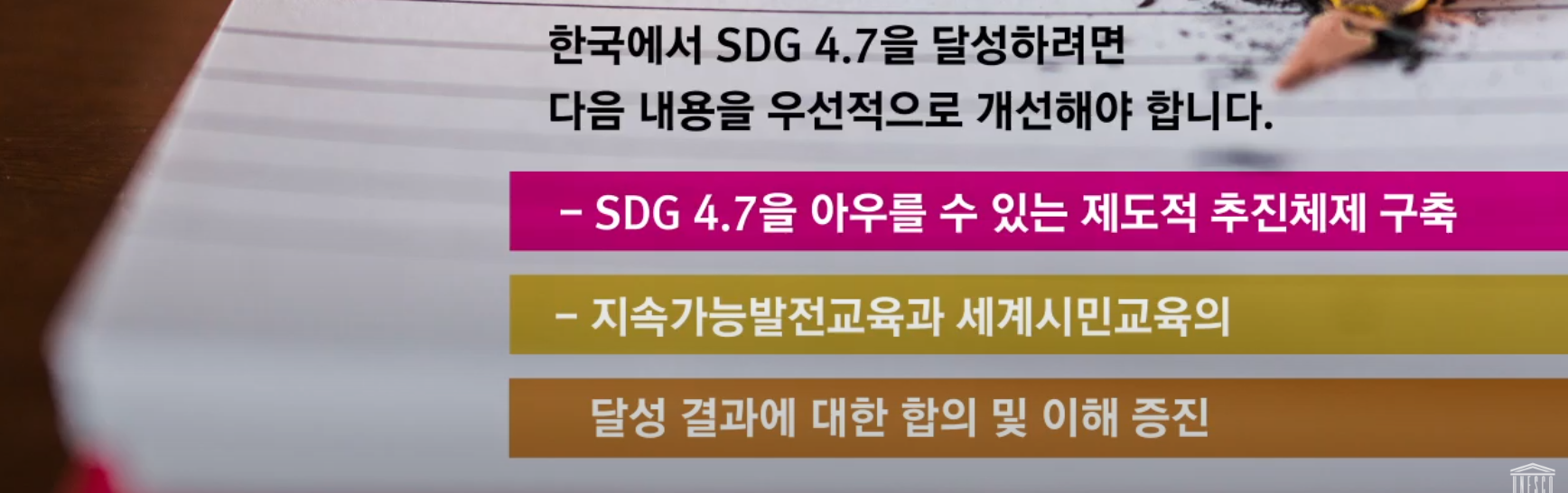 유네스코한국위원회 유튜브 youtu.be/oAdJ6weaSI0의 영상 내용에 따라 얼마나 달성되고 있는지를 간략하게 기록해보았다.