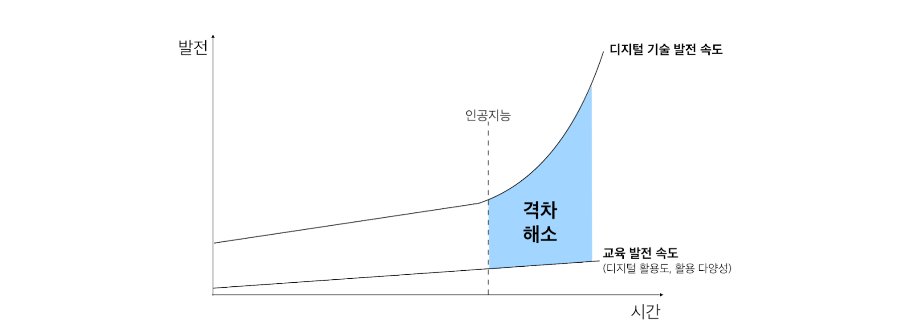 우리가 기존에 진행한 사용자 공감 단계에서도 IT접근성 격차에 따른 아이들의 학습성취 격차 또한 보급률 이외에도 개인이 IT기기에 적응/익숙한 정도, 정보 해석에 도움 받기가 어려움이 있는 경우가 격차의 원인으로 꼽혔었다. 이처럼 디지털 리터러시 격차는 실재하는 문제이며, 위의 그래프에서 보이듯 앞으로 더 급격해질 문제이며, 따라서 시급하게 해결해야 할 문제인 것이다. IT기기의 보급은 정부의 지원이나 정책적인 문제로 풀어야 할 문제라면 디지털 리터러시 격차의 문제는 우리가 ICT로 풀 수 있지 않을까?